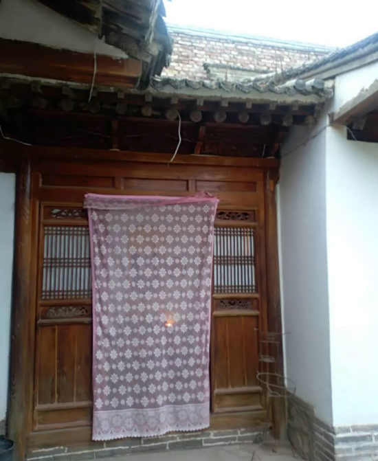 下房为客房,三间主室,一间套房,民间谓之“四厅”,三檩抬梁,“人”字形构架,暗柱,檐上斗栱间浮雕“鹭鸶躟莲”、“锦鸡戏牡丹”“琴棋书画”等纹饰,精细传神,栩栩如生。屋内左壁开一门通于套间。院左西房一座,三间主房,一间耳房,民间谓之“琵琶”。院右东房一座三间,四门,开窗较小,民间谓之“布裙”。琵琶、布裙皆为秦地民间建筑的形式,未请教专业人士,但据民宅中房屋形状可以看出,琵琶房为三间正房,左带一间耳房,耳房前廊缩进,屋顶亦低于主房,较为小巧,从平面看类似琵琶之状,故臆测其命名当来于此。耳房虽小,但构造精致,全木构造,梁枋间镂刻缠枝菊花等纹饰,可能旧为闺房。布裙者,其正面中设全木结构四门,左右为土墙包裹,开窗较小,整体对称如裙,亦属臆测,有待于多识者纠正。西房为少主人夫妇所住,东房布裙房为小辈居室,位于东南巽方,为读书习字最佳方位。四面房屋对称分布,规整中略有变化,庄重中透着灵动。正房之右有门通往后院,后院残存房屋简陋,旧为杂役住所及仓房等。今已荒僻圮颓。